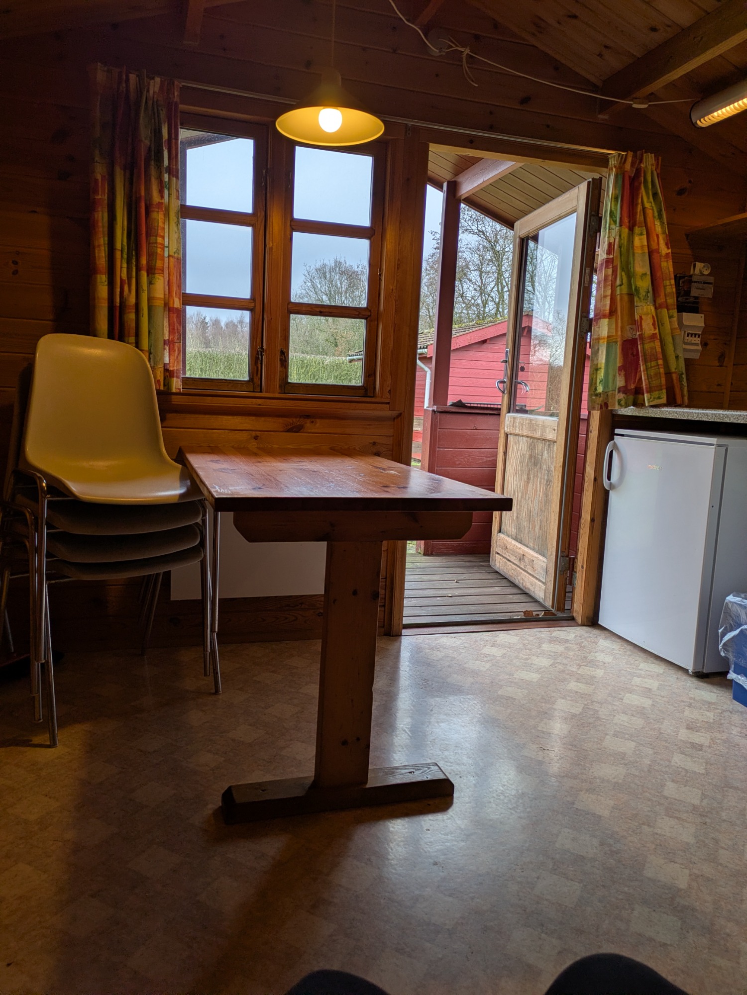 Kogeplader, kaffemaskine, elkedel, gryder, pander, service, glas og kopper kan lånes.Hütte mit